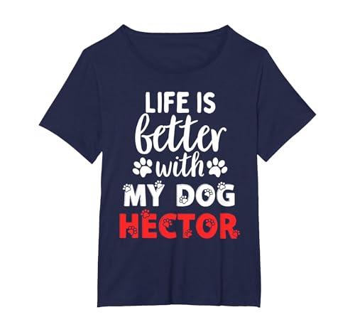 Dog Name Hector Life is Better with My Dog Named Hector T-Shirt, Women's Plus, Navy Blue, 5X