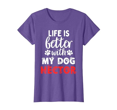 Dog Name Hector Life is Better with My Dog Named Hector T-Shirt, Women, Purple Heather, XX-Large