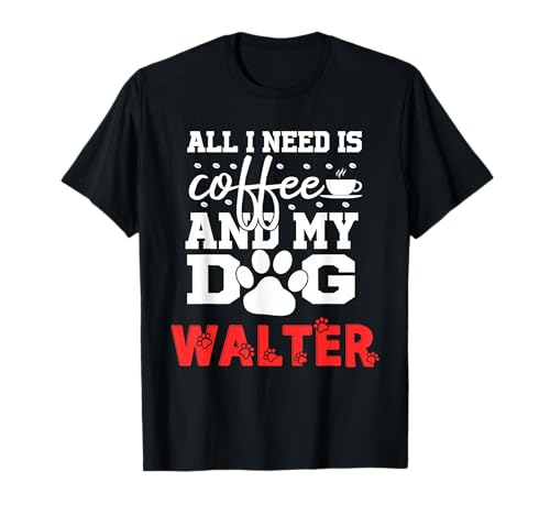 Dog Name Walter All in Need is Coffee My Dog Named Walter T-Shirt