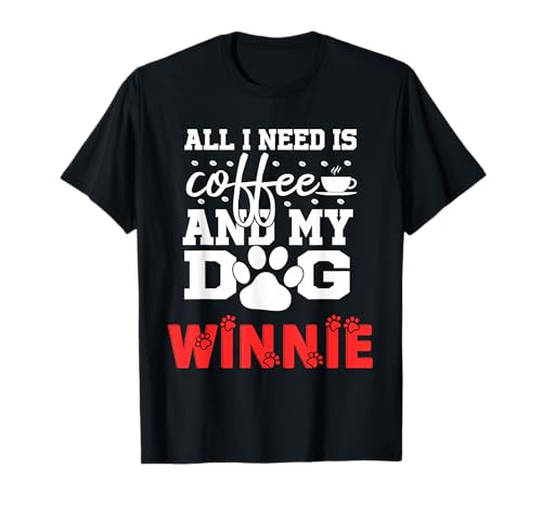 Dog Name Winnie All in Need is Coffee My Dog Named Winnie T-Shirt