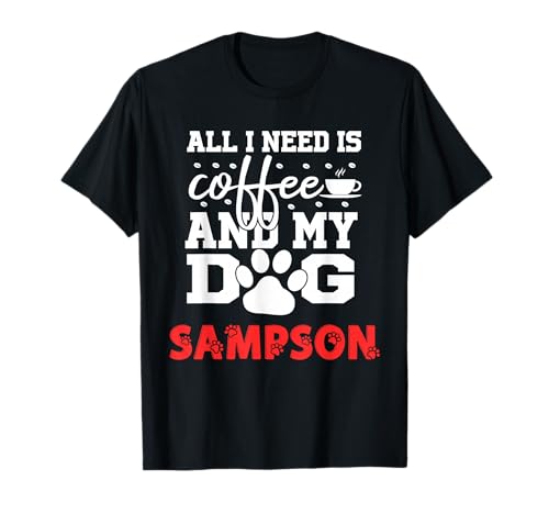 Dog Name Sampson All in Need is Coffee My Dog Named Sampson T-Shirt