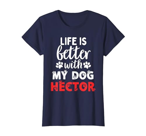 Dog Name Hector Life is Better with My Dog Named Hector T-Shirt, Women, Navy Blue, Medium
