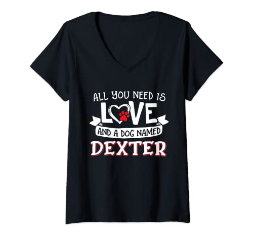 Womens All you need is love and a dog named Dexter small large V-Neck T-Shirt