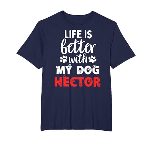 Dog Name Hector Life is Better with My Dog Named Hector T-Shirt, Men, Navy Blue, Large