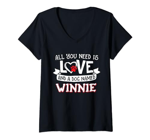 Womens All you need is love and a dog named Winnie small large V-Neck T-Shirt