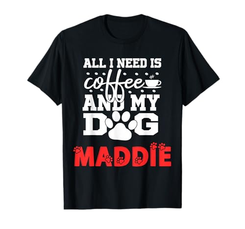 Dog Name Maddie All in Need is Coffee My Dog Named Maddie T-Shirt