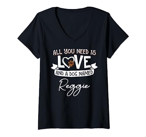 Cute Dog Named Reggie Shirt for Women and Men V-Neck T-Shirt