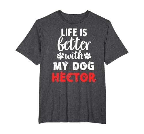 Dog Name Hector Life is Better with My Dog Named Hector T-Shirt, Men, Dark Heather Grey, Medium