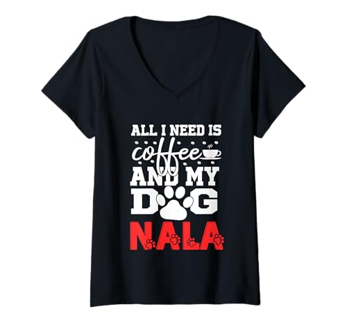 Womens Dog Name Nala All In Need Is Coffee My Dog Named Nala V-Neck T-Shirt