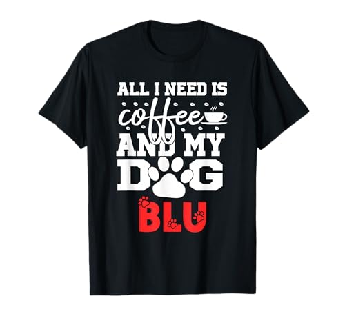 Dog Name Blu All in Need is Coffee My Dog Named Blu T-Shirt