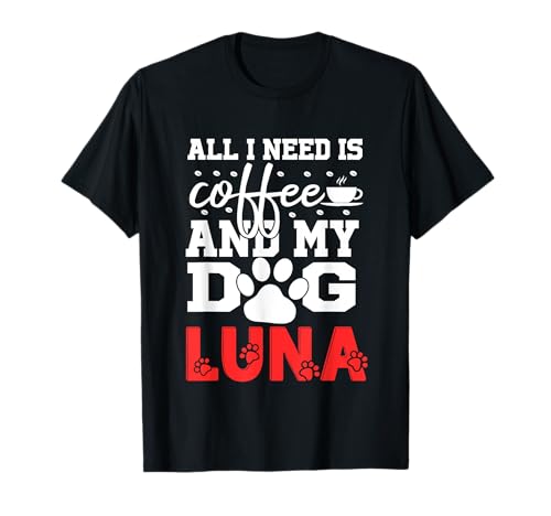 Dog Name Luna All In Need Is Coffee My Dog Named Luna T-Shirt