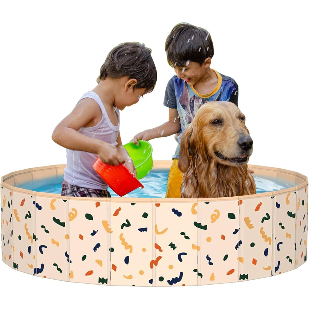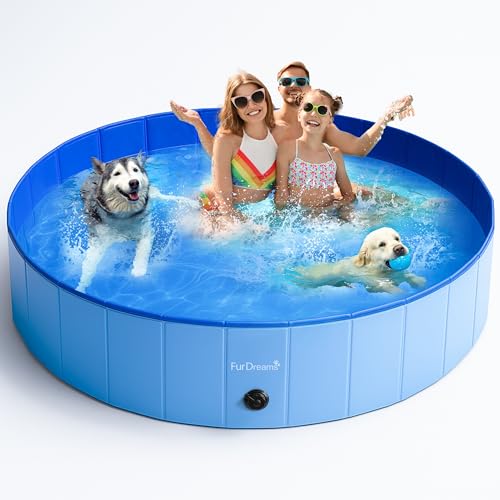 Furdreams Foldable Pet Swimming Pool, Hard Plastic Dog Bathtub, Portable Multi-functional Outdoor PVC Non-Slip Kiddie Pool, Enjoy Summer Shine in Your Garden, For Children, Cats, Puppies(Extra Large)