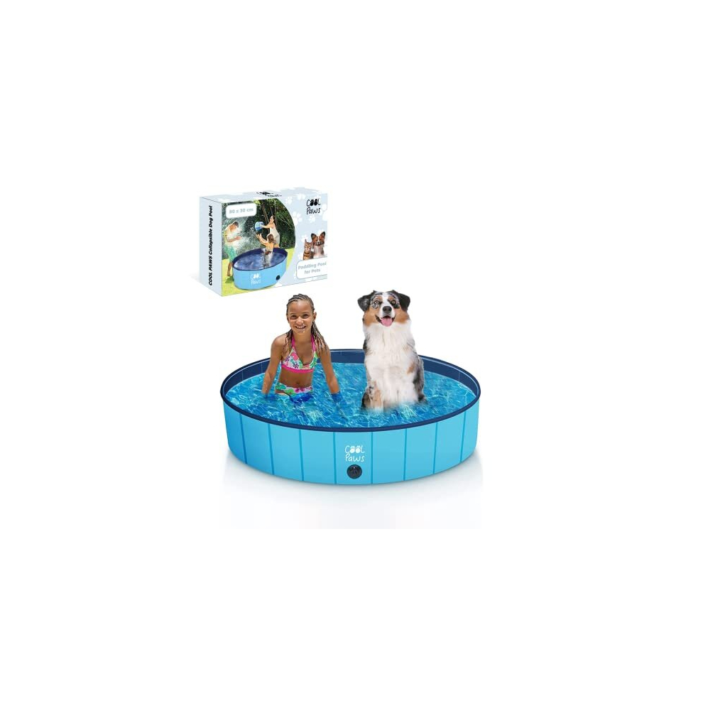 Cool Paws Paddling Pool – Foldable Dog & Kids Pool in Many Sizes (S–XL), Leakproof & Durable Hard Plastic Design, Pet Bath or Play Pool for Indoors, Outdoors, Garden, Patio – Blue - Packaging May Vary