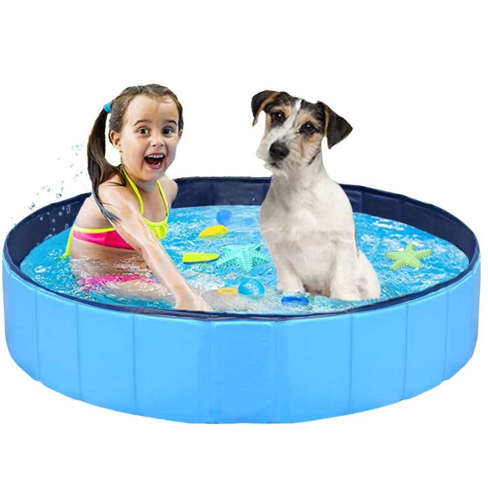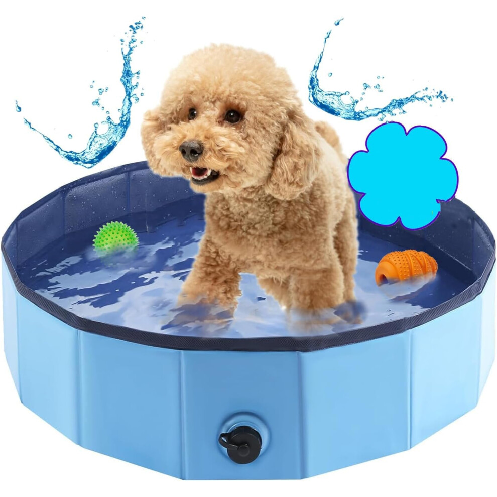 Foldable Pet Pool Plastic Collapsible Dog Bath Tub for Puppy Small Cats Outdoor/Indoor UseBlue 80 x 30cm / 31.5 x 11.8in