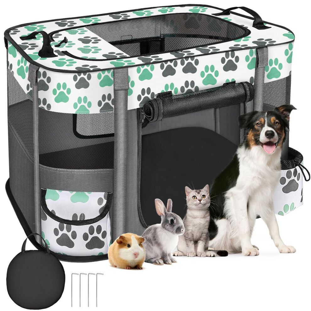 Foldable Pet Playpen, Portable Dog Cage Puppy Pen Cat Playpen, Indoor/Outdoor Pop up Pet Tent Fence (L, Green)