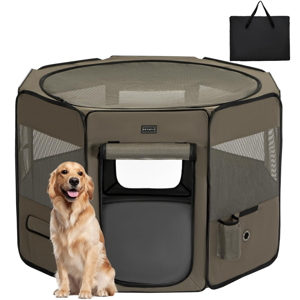 PETSFIT Dog Pen Indoor, Anti-Leakage Bottom, Foldable, Collapsible Puppy Play Pen, Chewproof Design, Dog Playpen Indoor, 116 ? 106 ? 72 cm,Tea Gray