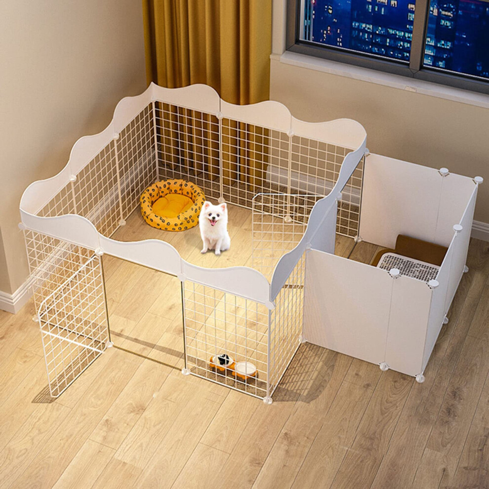 Dog Playpen - Indoor Metal Playpen for Dogs and Cats, Foldable Pet Kennel with Door, DIY Wire Fence 163x111x57cm White