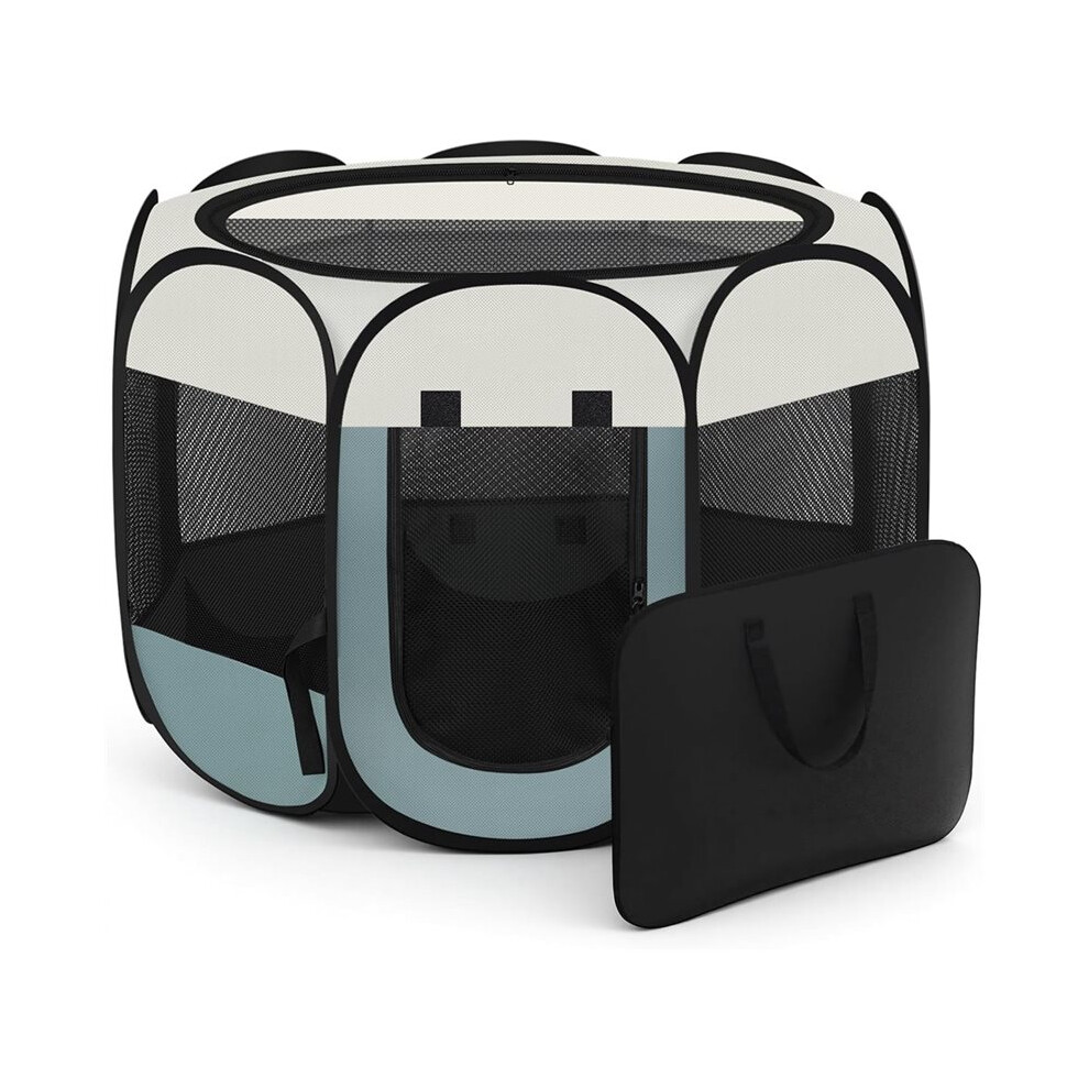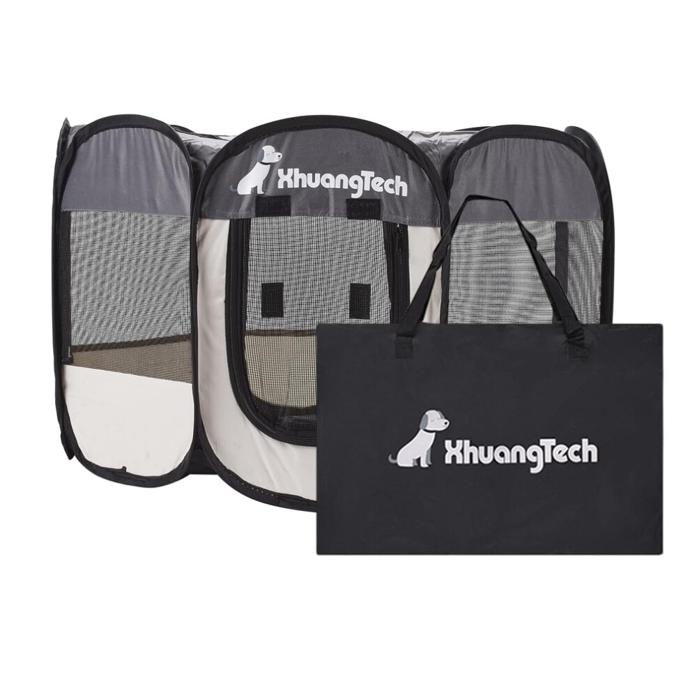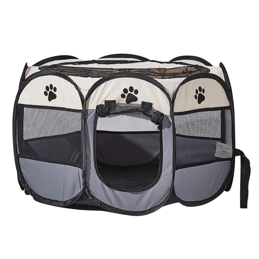 XhuangTech Soft Fabric Portable Foldable Pet Dog Cat Puppy Playpen, Indoor/Outdoor use Pet Kennel Cage Travel Pet Carrier + Carrying Case? (Grey &