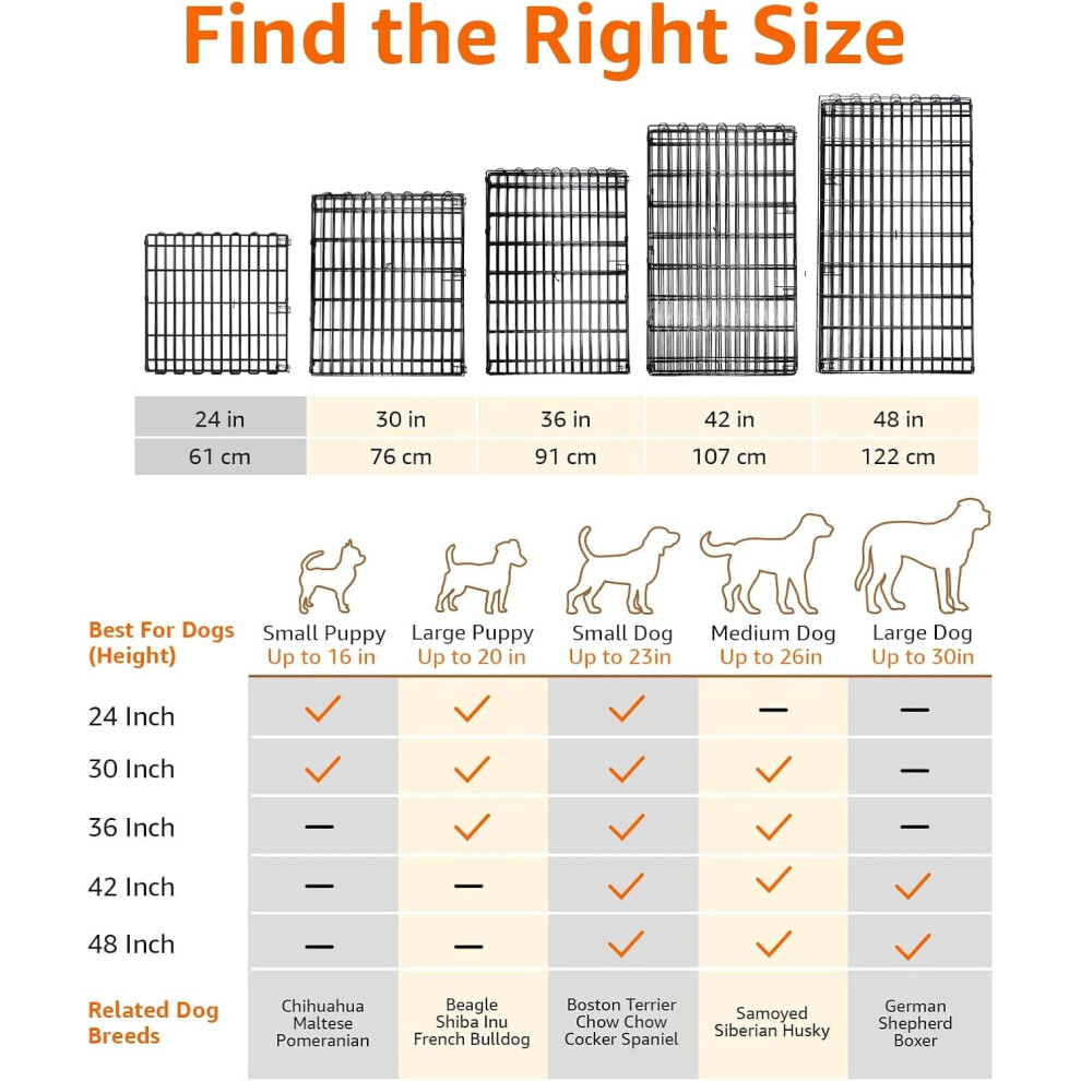 Metal Exercise Dog Playpen - Indoor/Outdoor, No Door, Extra Small (8 Panels, 24 x 24), Easy to assemble, store, and customize, 24" - Puppy, Black