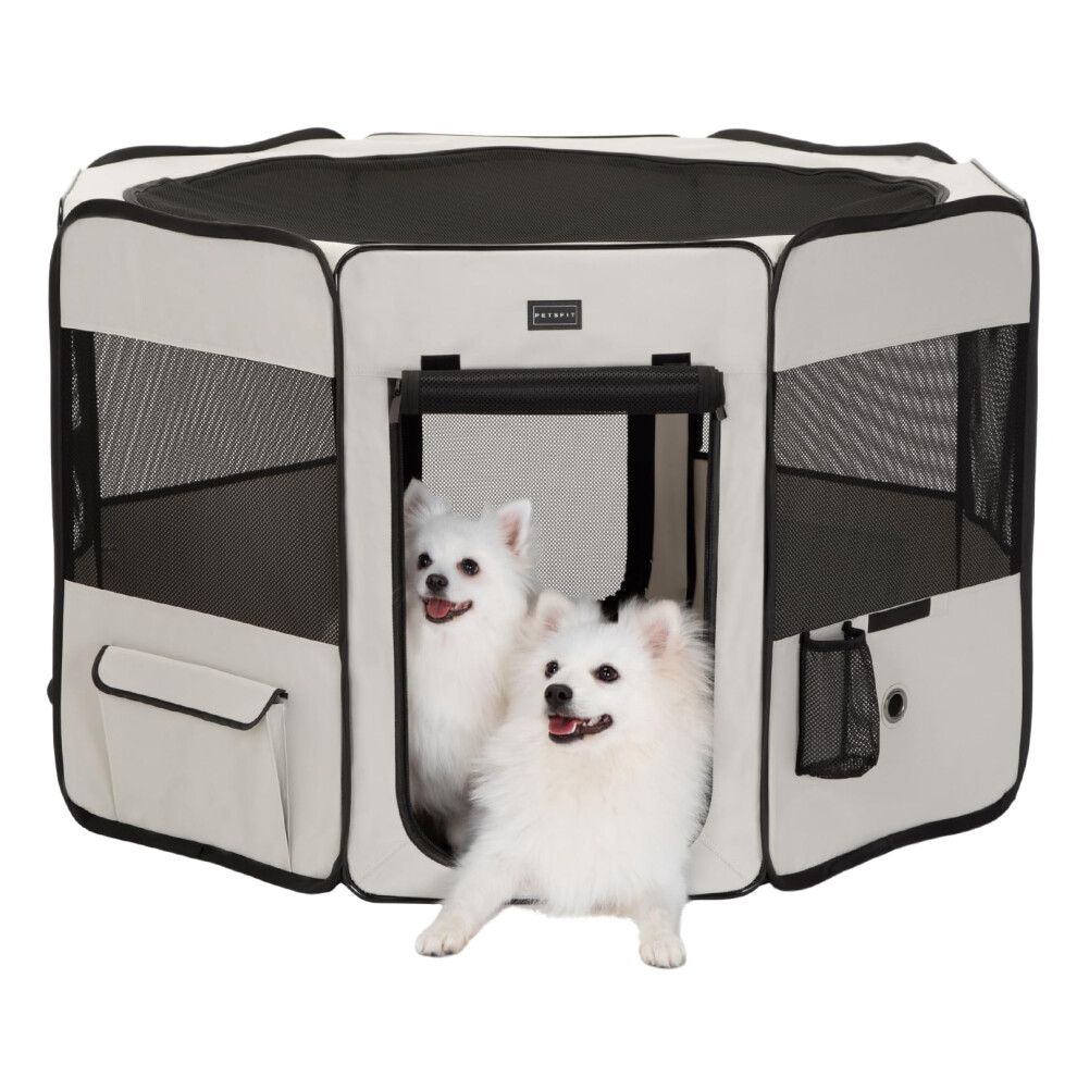 PETSFIT Dog Pen Indoor, Anti-Leakage Bottom, Foldable, Collapsible Puppy Play Pen, Chewproof Design, Dog Playpen Indoor, 116 ? 106 ? 72 cm,Beige