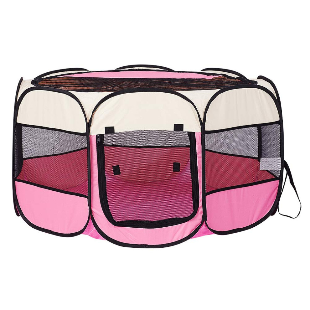 XianghuangTechnology Soft Fabric Portable Foldable Pet Dog Cat Puppy Playpen, Indoor/Outdoor use Pet Kennel Cage D40 x H23 Inch (Pink)
