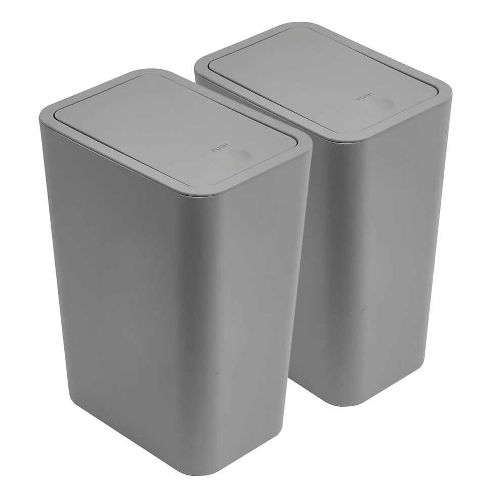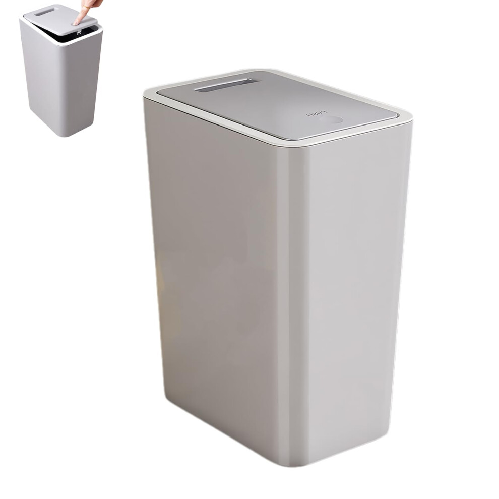 2Pack Bathroom Bin with lid,Push Button Kitchen Bin,Plastic Bins for Toilet, Dog Proof Bin,Trash Can for Bedroom Office Living Room (Grey)