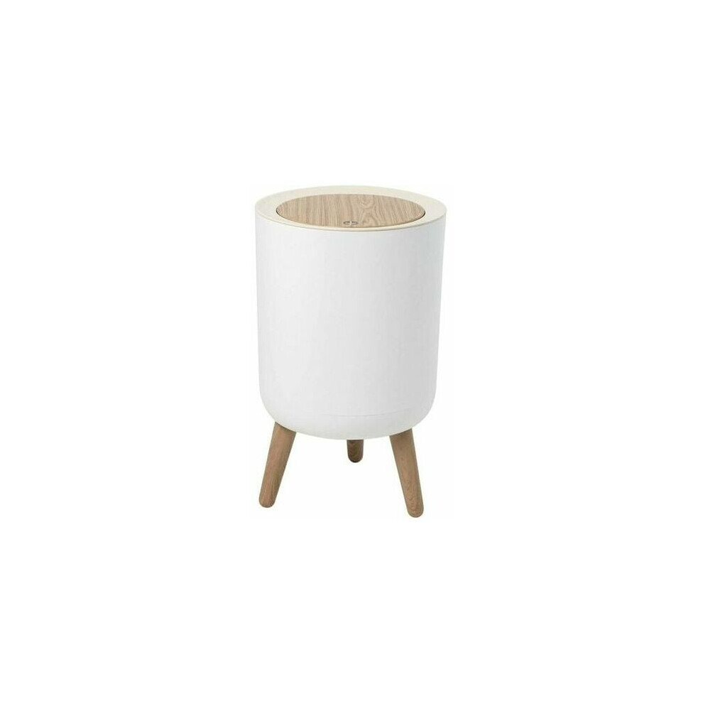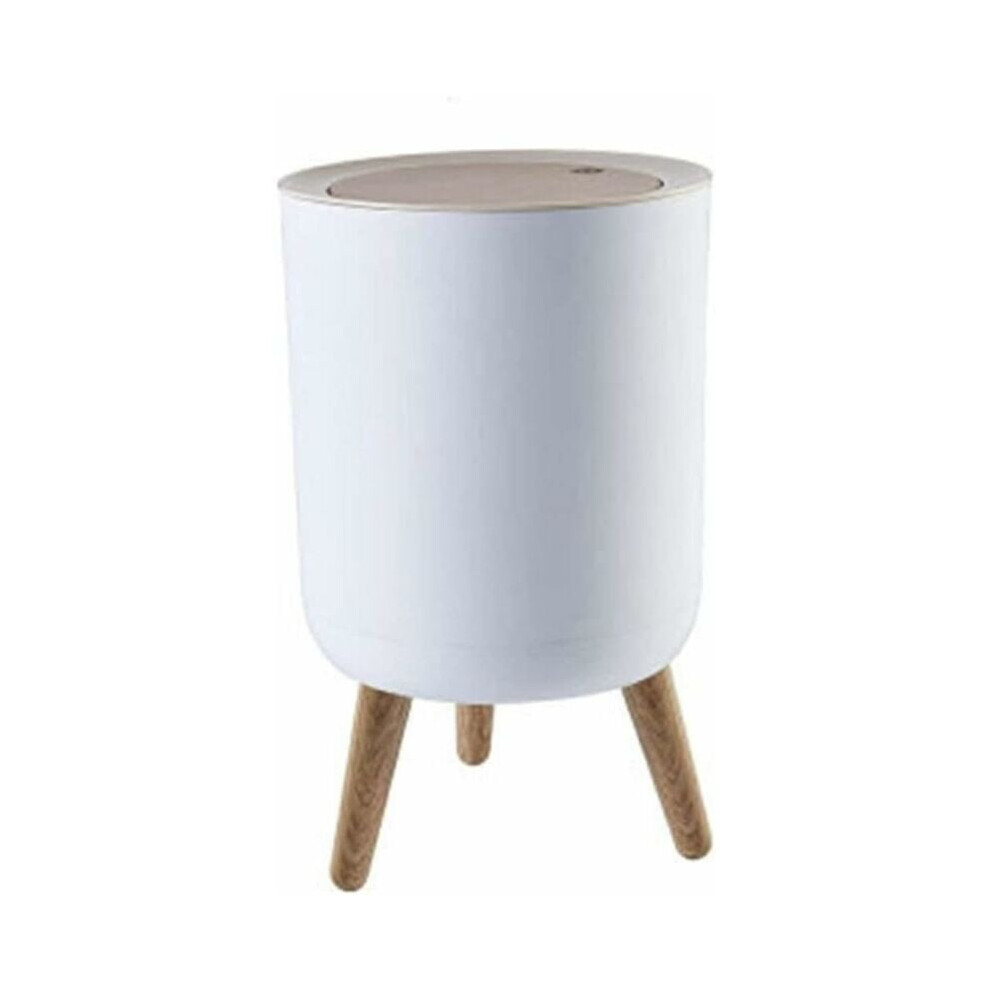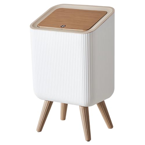 Elegant Round Trash Can, Press Lid Dog-Proof Waste Bin with Wooden Legs, Odor Block for Multiple Rooms, High-End Plastic Easy Trash Bag Replacement (W