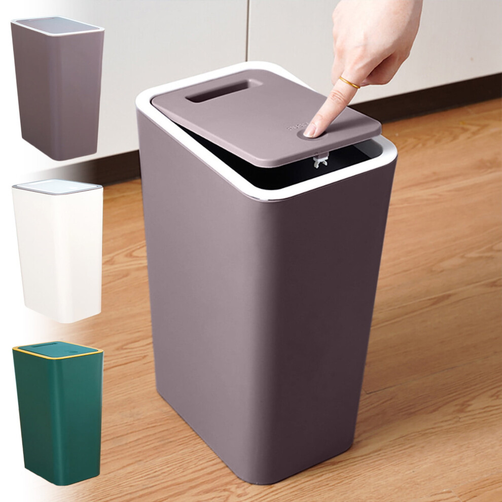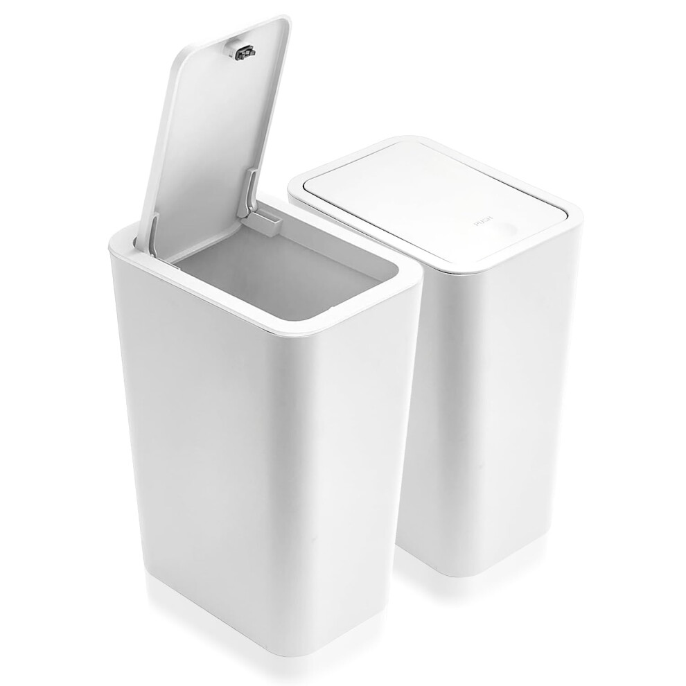 2Pack Kitchen Bin,10L Bathroom Bin with lid,Push Button Design,Plastic Bins for Toilet, Dog Proof,Ideal for Bathroom,Kitchen,Bedroom,Living