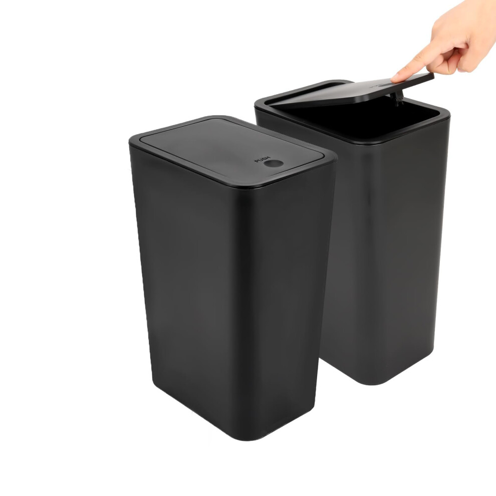2Pack 9L Black Plastic Bin with Lid - Push Button, Dog Proof for Kitchen, Bathroom, Bedroom, Office & Living Room
