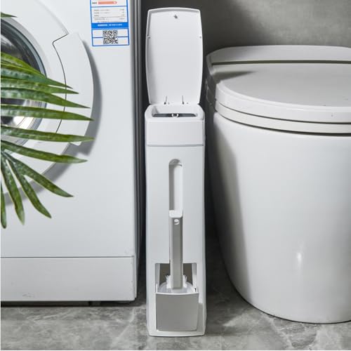 Pop Up Bathroom Bin - 4.5L Plastic Bin with Lid, Toilet Brush, Dog Proof - White