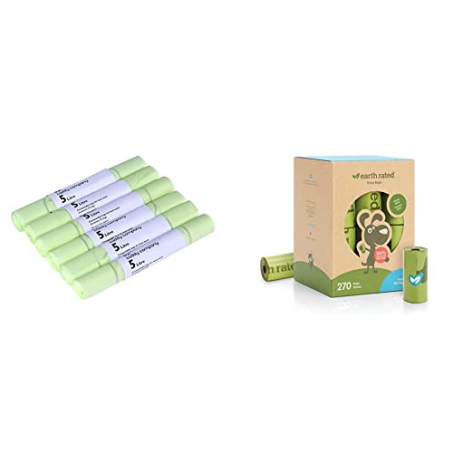 The Caddy Company Compostable Bin Liners 5 Litre, 150 Bags, Green & Earth Rated Dog Poo Bags, Guaranteed Leak Proof and Extra Thick Waste Bag Refill Rolls For Dogs, Unscented, 270 Count