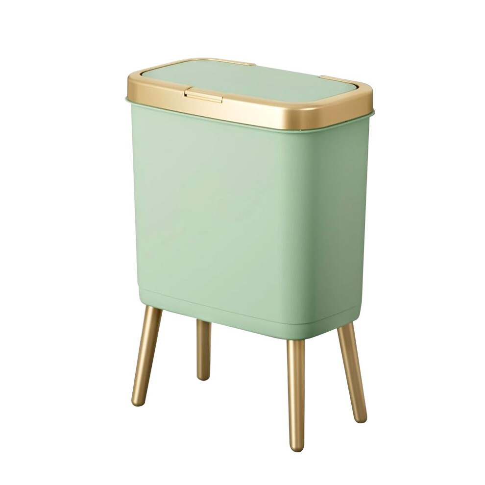 Elegant Bathroom Trash Can with Lid, 4 Gallon Green Plastic Wastebasket, Slim Dog Proof Garbage Bin with Gold Edge