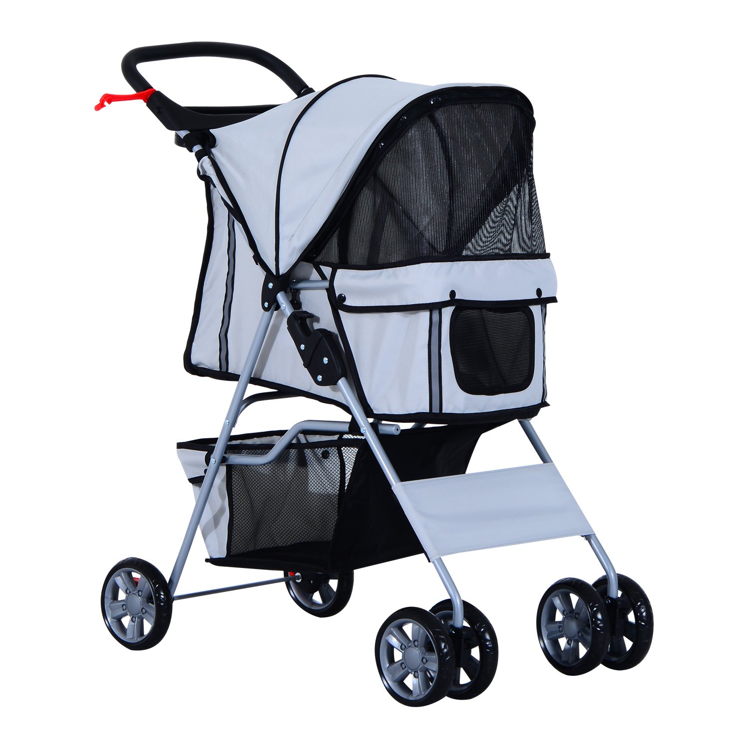 Pawhut Foldable Pet Stroller One Click Dog Pushchair Cat Travel Carriage W/ Eva Wheels, Mesh Windows For Small Pets, Grey