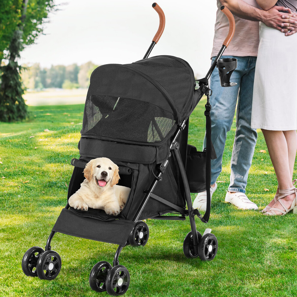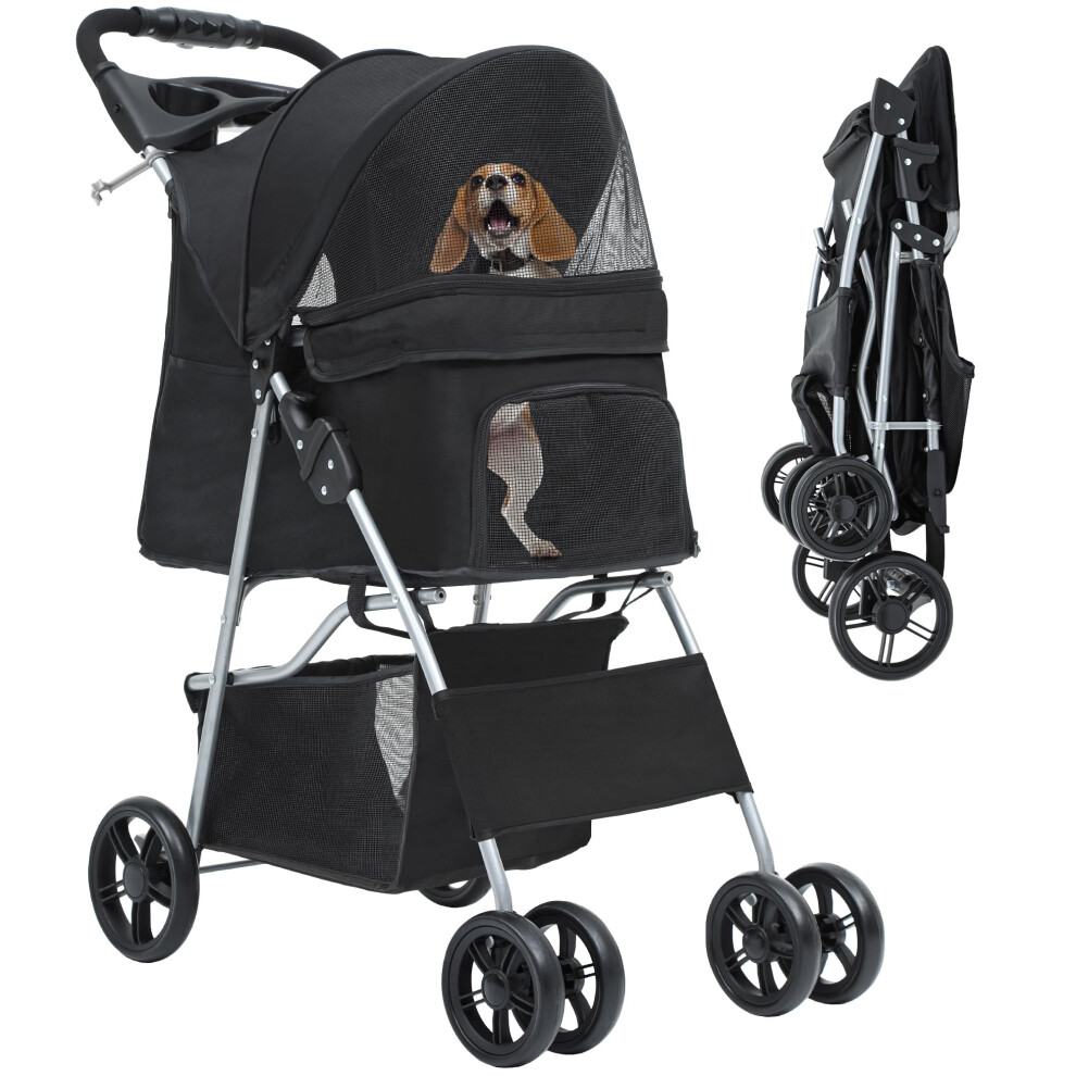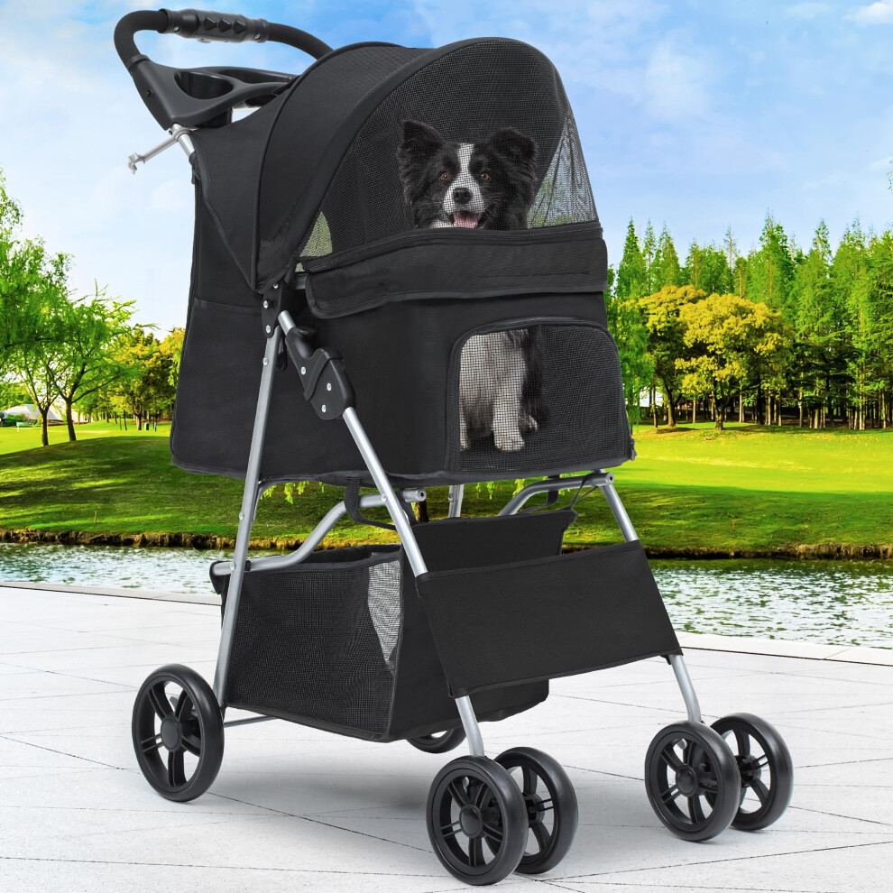 Display4top Pet Travel Stroller Dog Cat Pushchair Pram Jogger Buggy with 4 Wheels (Black)