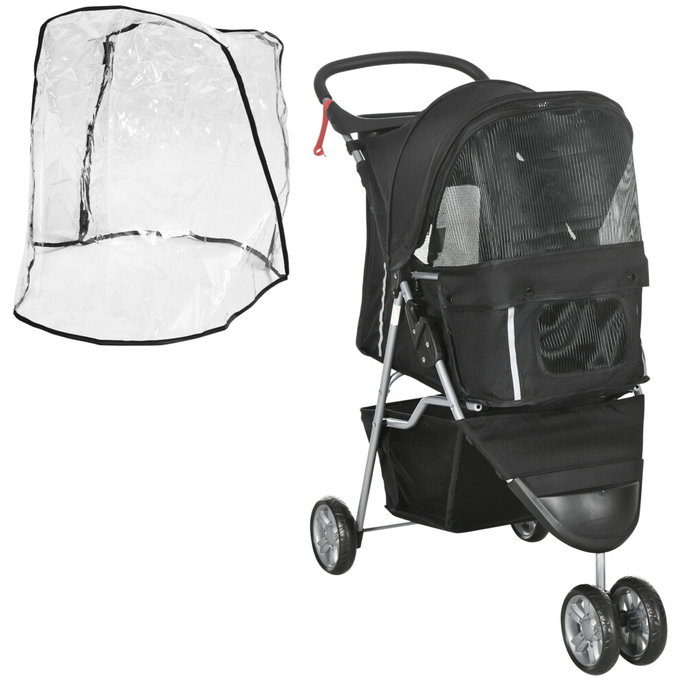 PawHut Pet Travel Stroller with Rain Cover, 3 Wheels Foldable Cat Dog Pushchair