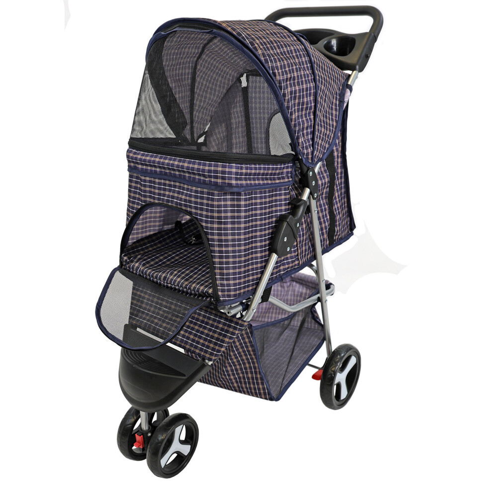 Pet Stroller Dog Cat Puppy Pram Pushchair Blue Tartan