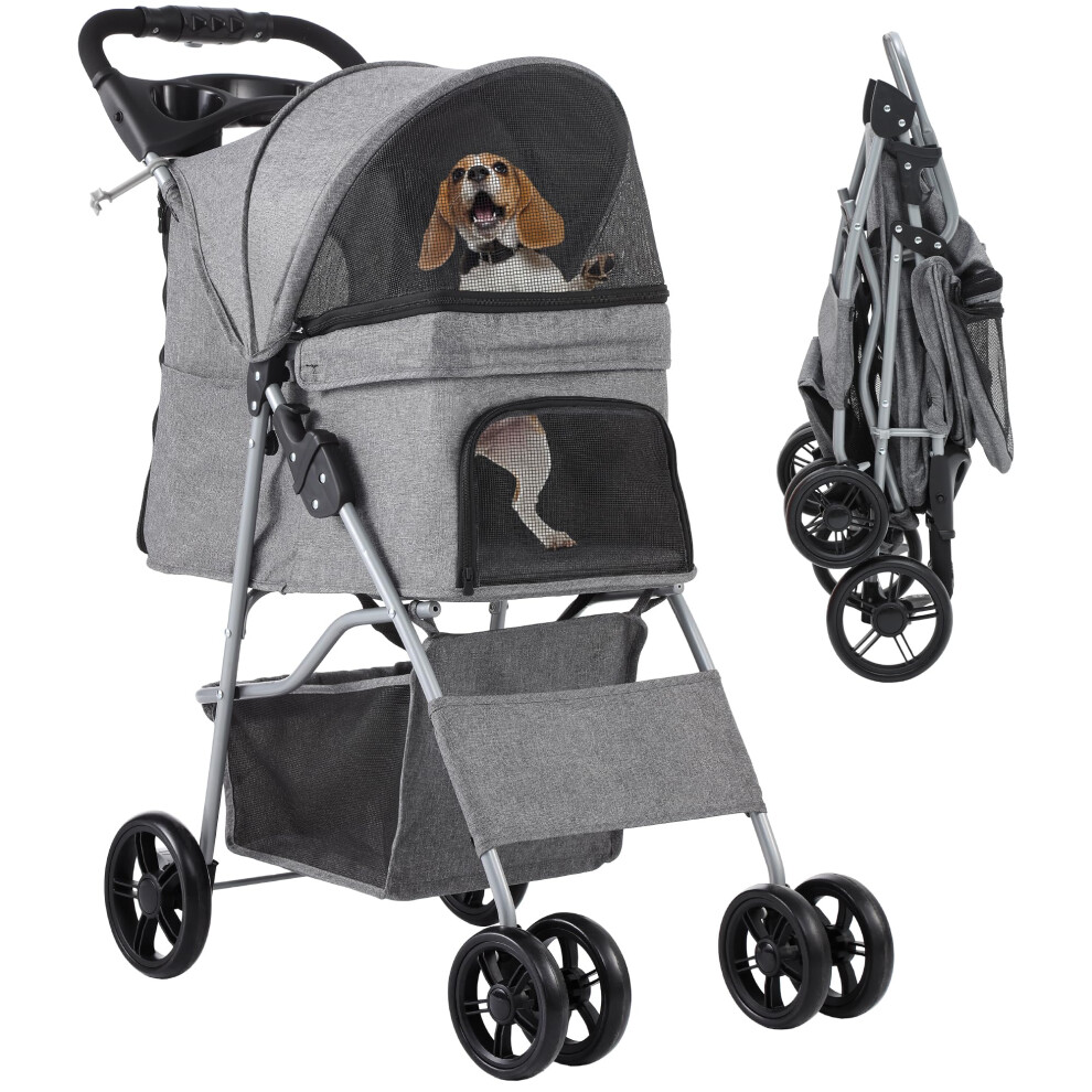 PawHut Dog Stroller W/ Cover, Folding Cat Pram Dog Pushchair for S XS Dogs Grey