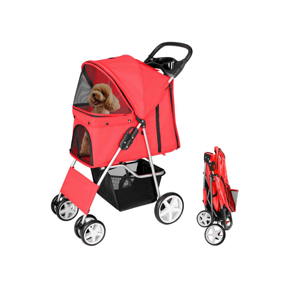 Display4top Pet Travel Stroller Dog Cat Pushchair Pram Jogger Buggy with 4 Wheels (Red)