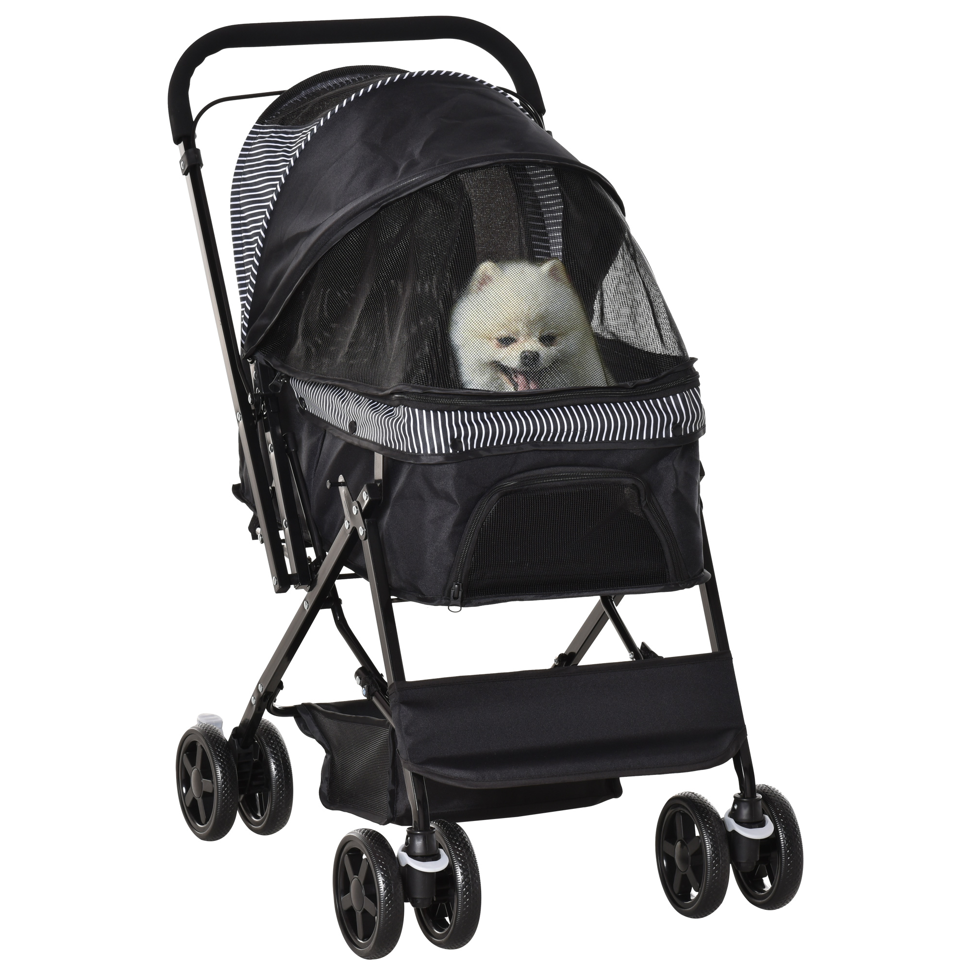 Pawhut Pet Travel Stroller Cat Dog Pushchair Trolley Puppy Jogger Carrier Three Wheels For Small Miniature Dogs(black)