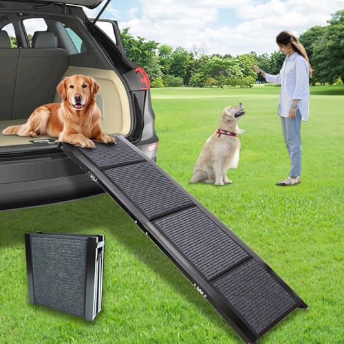 FASNATI Dog Car Ramp, Folding Dog Ramp for Car with Non-Slip Surface, Lightweight Aluminum Frame, Portable Pet Ramp for Medium, Large, and Older Dogs to Get into Cars and SUVs