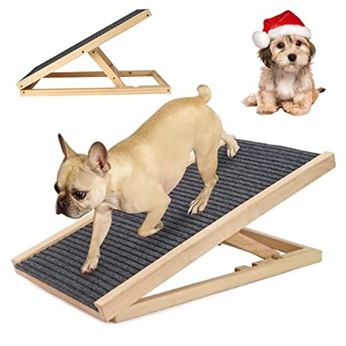 Aitakatta Adjustable Dog Ramp, Portable Folding Pet Ramp, 32" Long Wooden Pet Ramp for Bed with Non-Slip Traction Mat for Small Dogs, Dog Climbing Ladder for Sofa, Bed, Couch,Car(LGPT1,Gray)