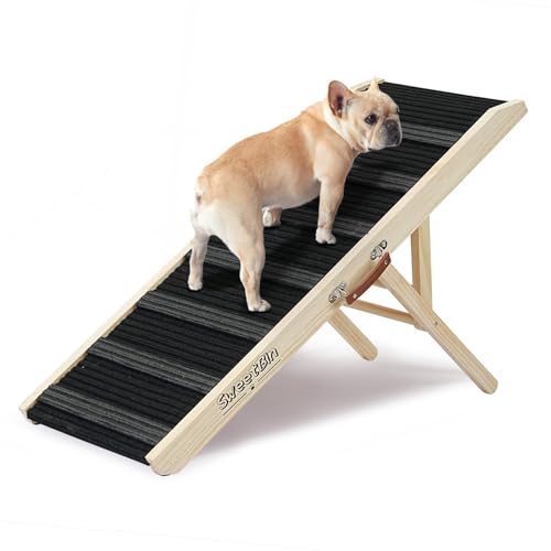 REHOOF Dog Ramp for Bed,Foldable Small to Large Dog Ramp for Couch, 2/4 Adjustable Height, Stairs, Wooden Portable Ramp for Steps Dogs to Get on Bed Couch,Car up to 60Kg,Pet Supplies L(100×43CM)