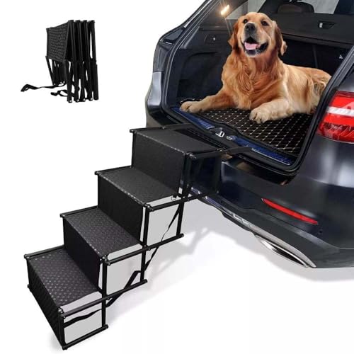 4 Steps Folding Portable Dog Ramp for Cars, Steps Car Boot Access Ladder for Pet Dog Cat, Pet Ramp with Non Slip Carpet Surface for Large/Small Dogs for Cars and Suvs, Easy to Store