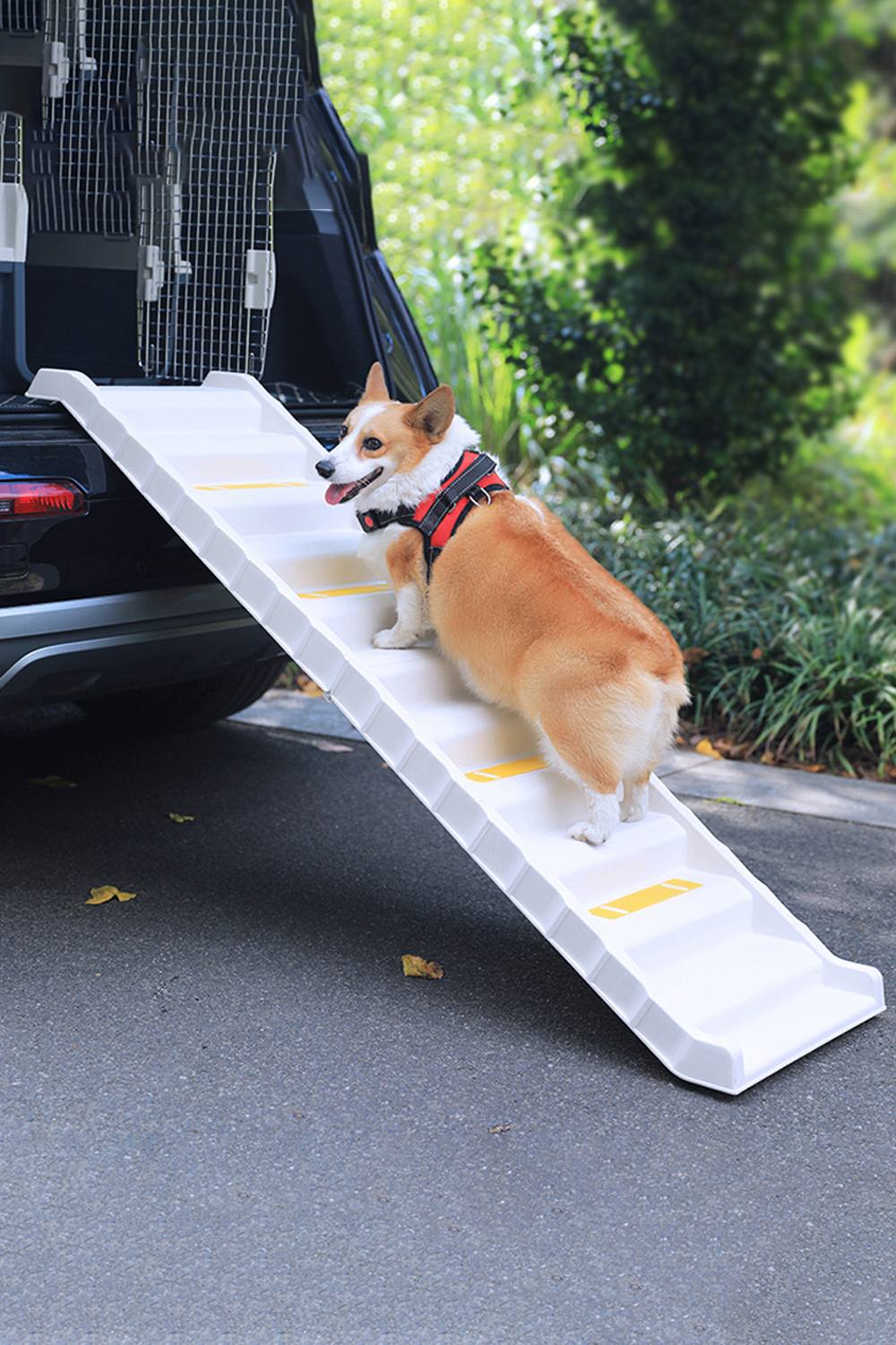 Living and Home Folding Portable Dog Pet Stairs Ramp Dog Steps Loadable up to 75kg Dog Ramp Travel Car Ramp in White