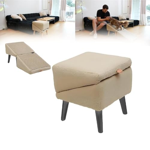 Split Ottoman Dog Ramp, 2-in-1 Foldable, Non-slip Dog Ramp for Small, Medium, Injured, And Senior Dogs And Cats, Portable Pet Stairs for Bed And Sofa, Khaki