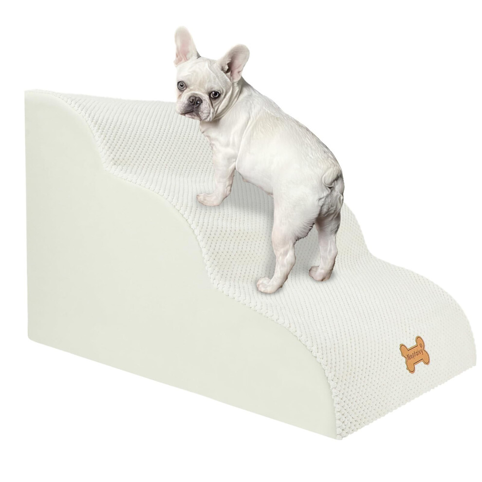 Dog Ramp for Sofa, Extra Wide Pet Ramp with Durable, Non-slip Fabric Cover, Ramp for Small Dogs, 3-step (beige)
