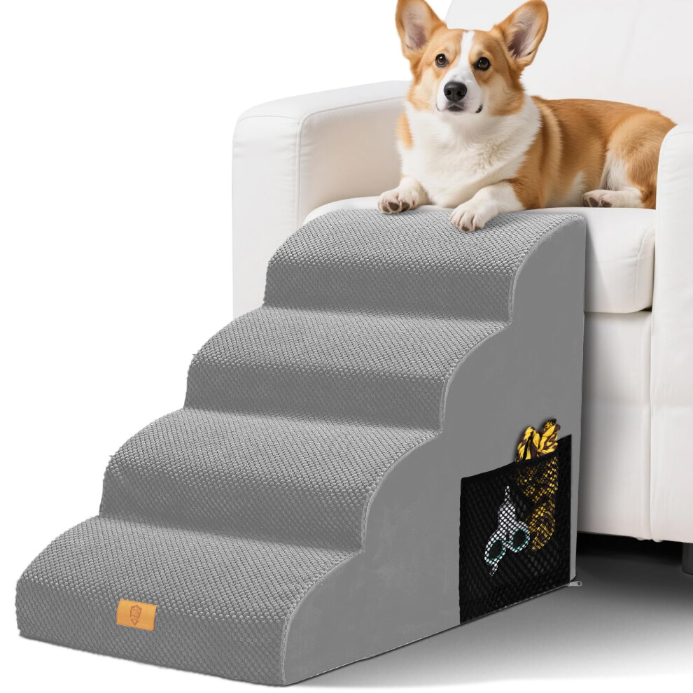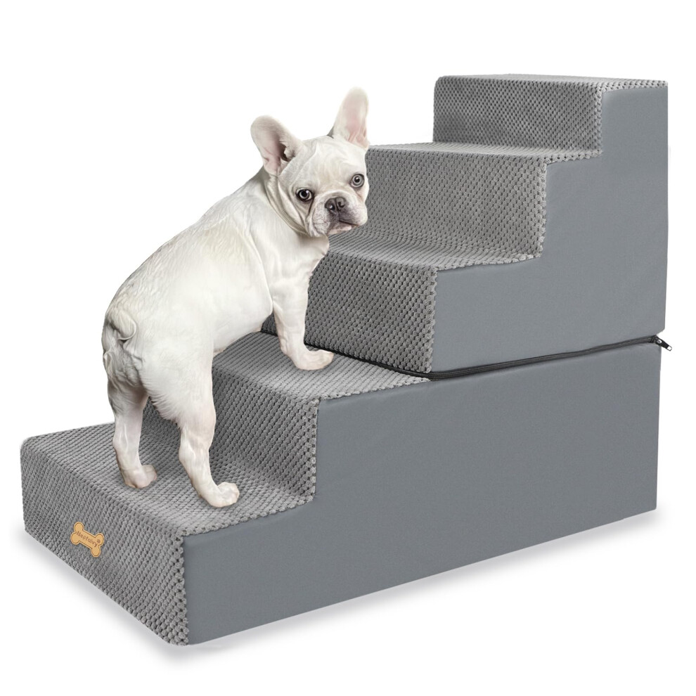 Nepfaivy Dog Steps Stairs for Bed - Non-Slip Pet Stairs for Small Dogs and Cats, 5-Steps Dog Ramp for Sofa with High Density Foam and Removable Cover,