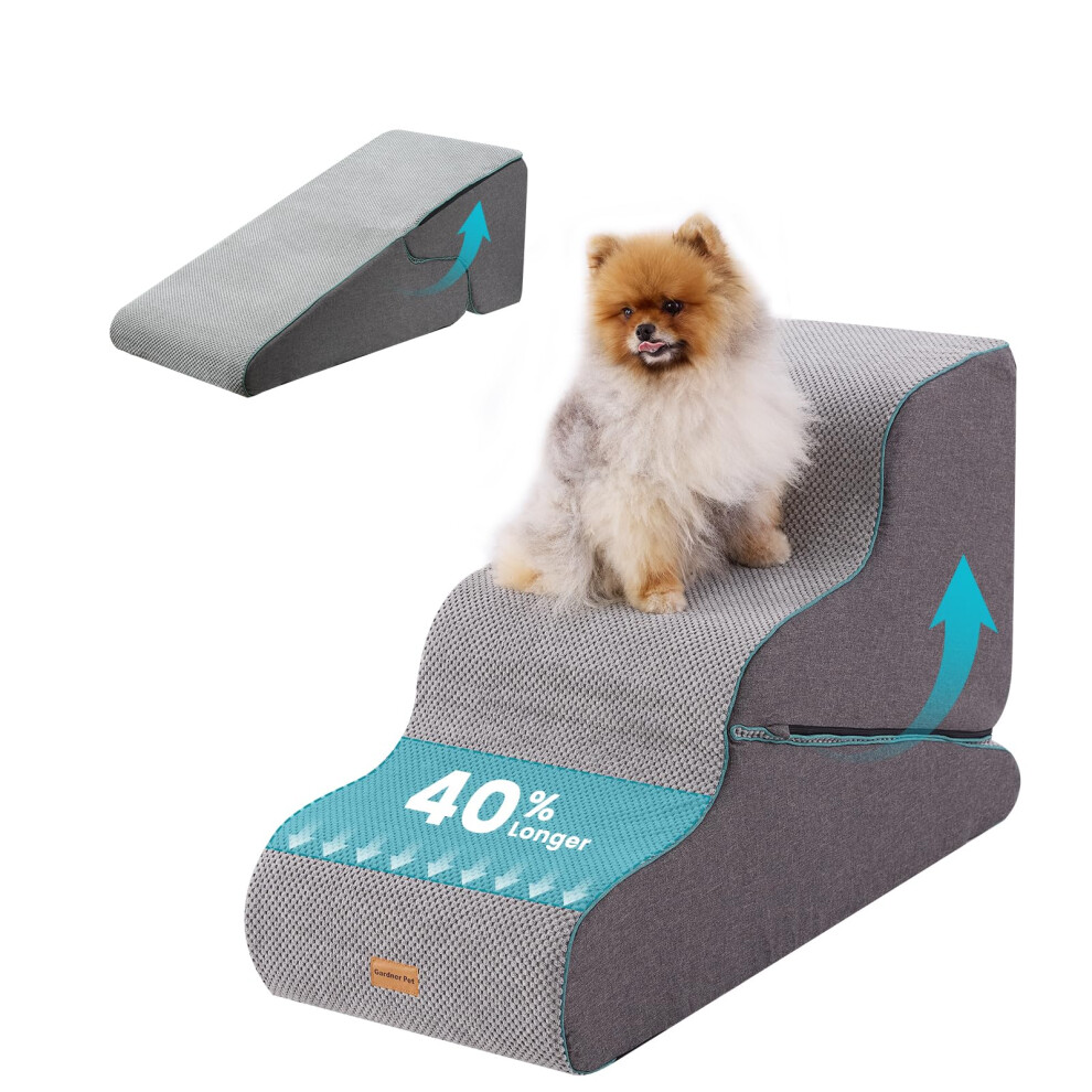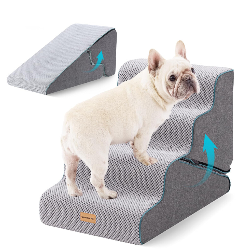 Gardner Pet 2-in-1 Dog Steps for Bed, Adjustable 3-Steps High Density Foam Dog Ramp for Sofa, Water Resistant Pet Stairs with Non Slip Bottom, Suitable for Puppy, Small Animals, Grey