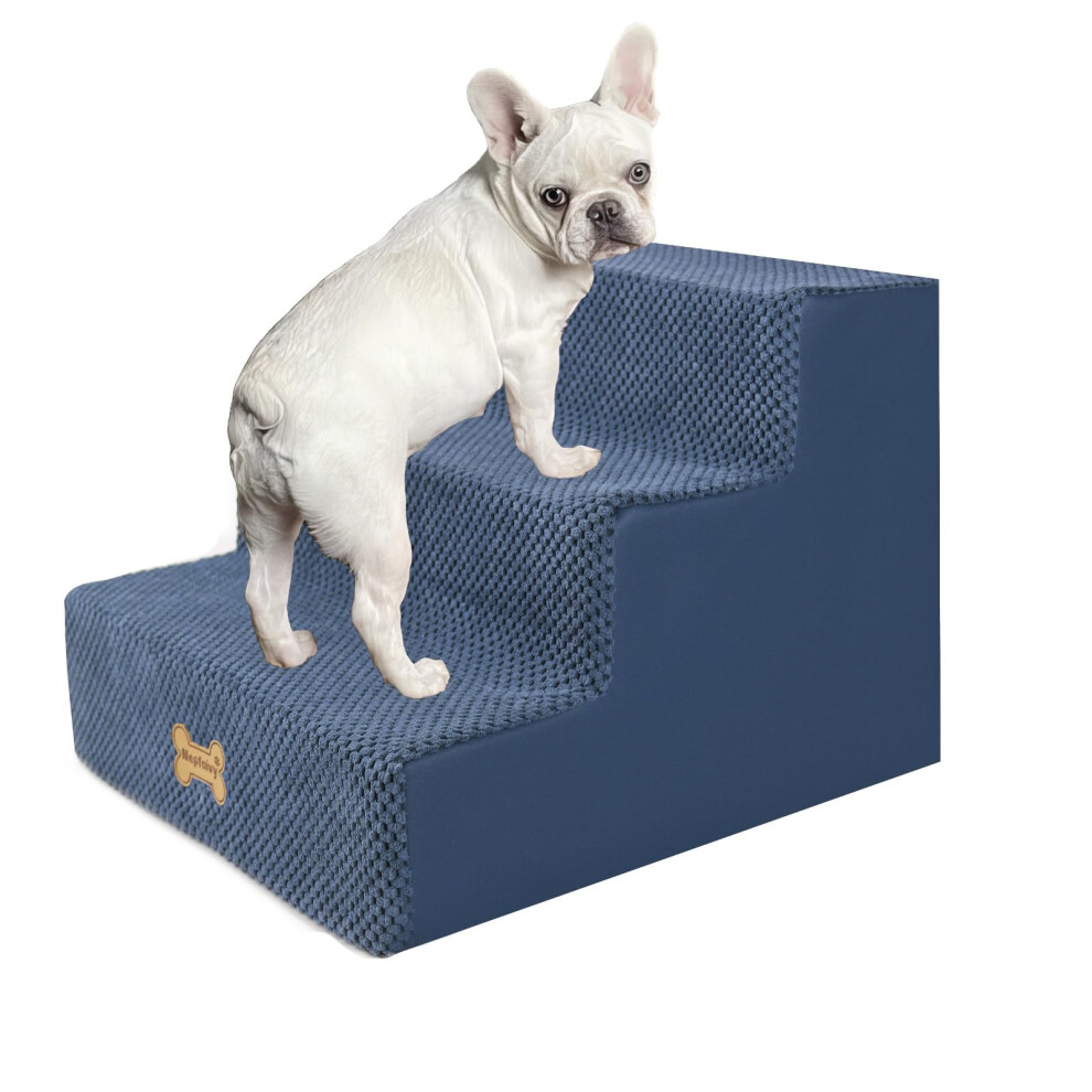 Dog Ramp for Sofa, Extra Wide Pet Ramp with Durable, Non-slip Fabric Cover, Ramp for Small Dogs, 3-step (blue)