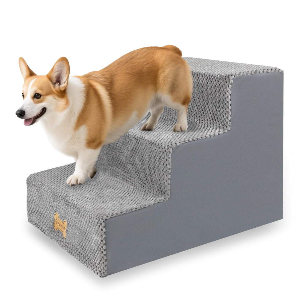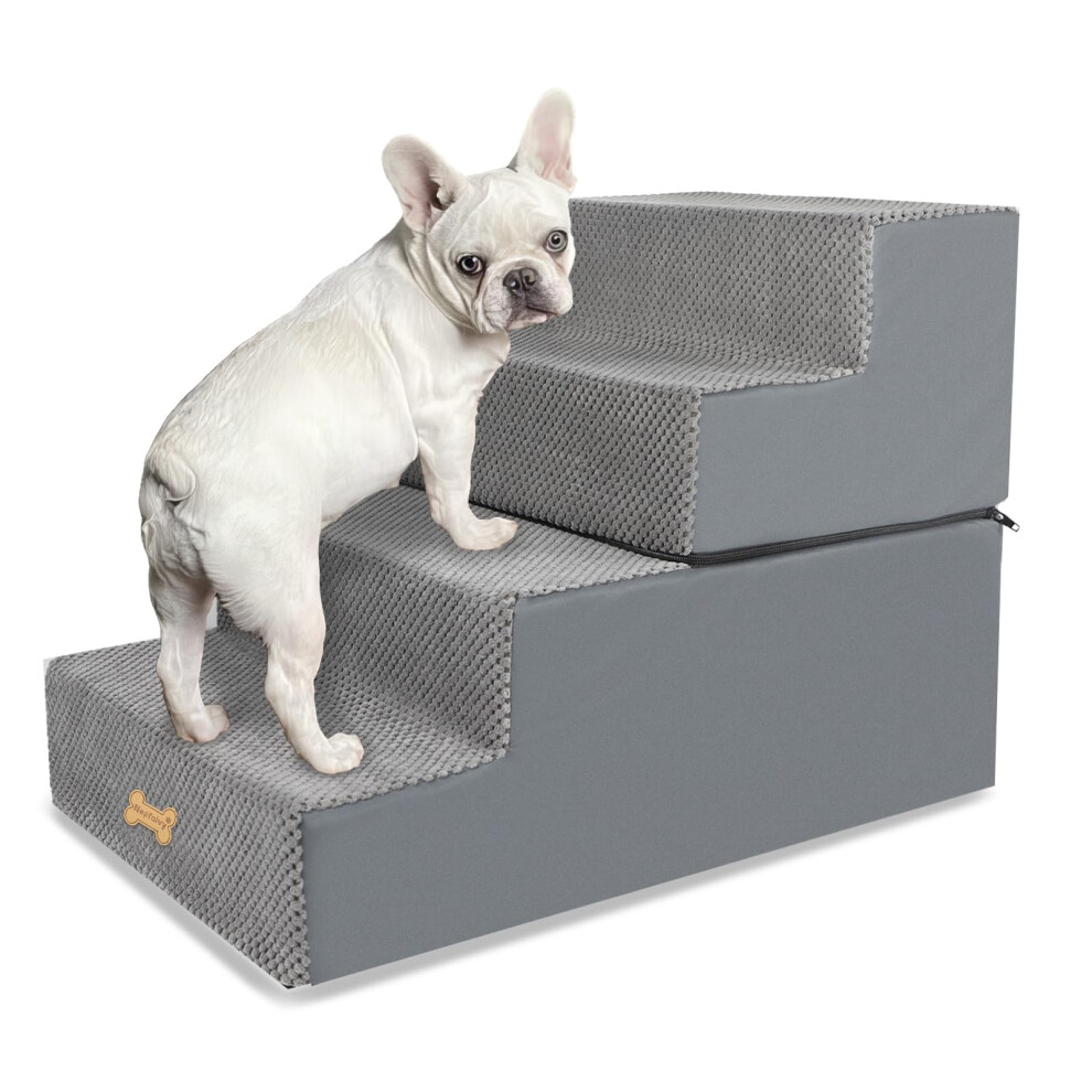 FURRYPAWS Dog Steps for Bed and Sofa, 3-Step Non-Slip Dog Stairs, High Density Foam Pet Stairs for Small,Senior Dogs and Cats, Dog Ramp for Sofa, with Removable Washable Cover, 60×40×40cm